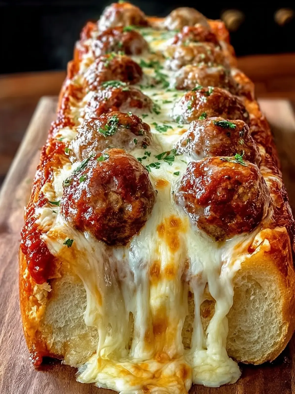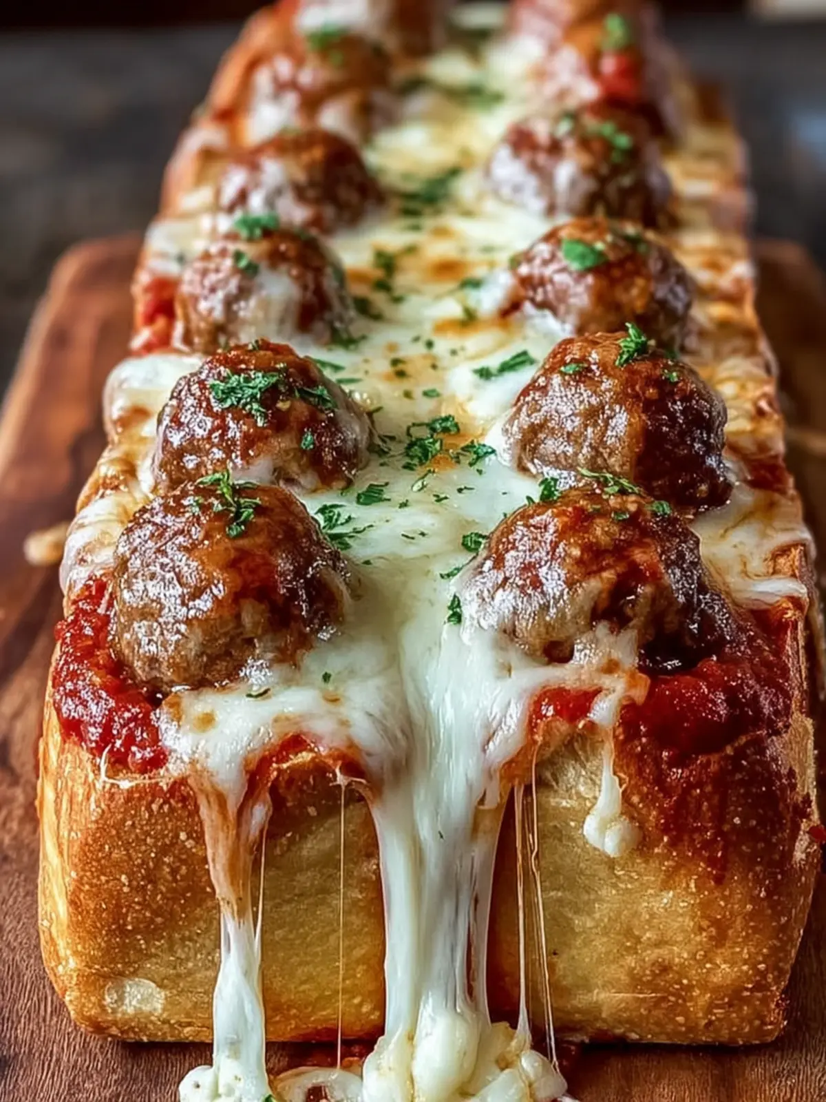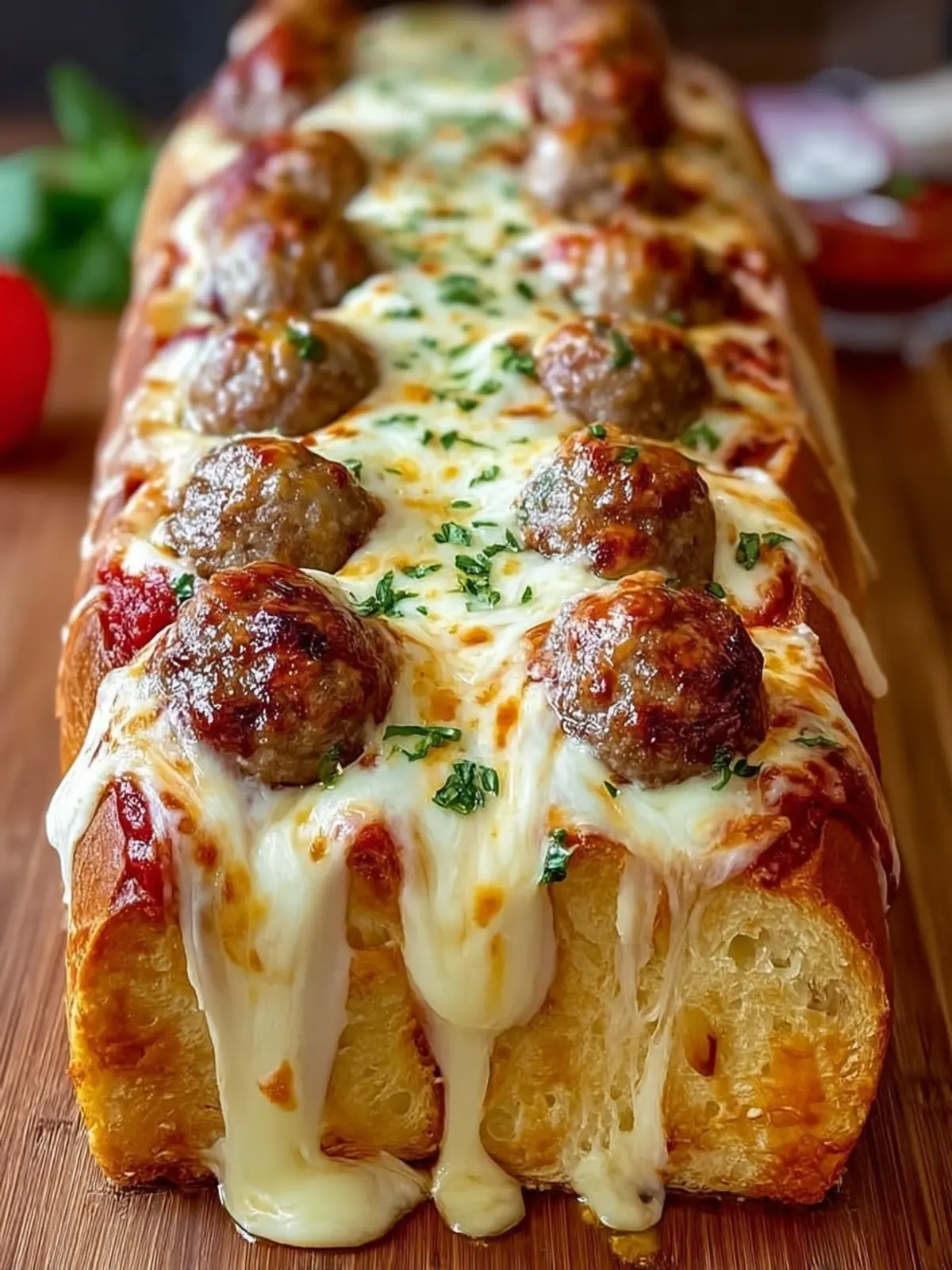 A delicious and cheesy meatball sub loaf that’s perfect for sharing!