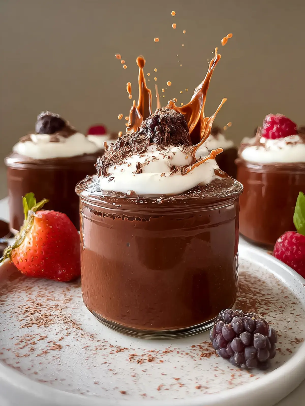 - Pour into containers and top with dairy-free whipped cream and chocolate shavings if desired and enjoy!