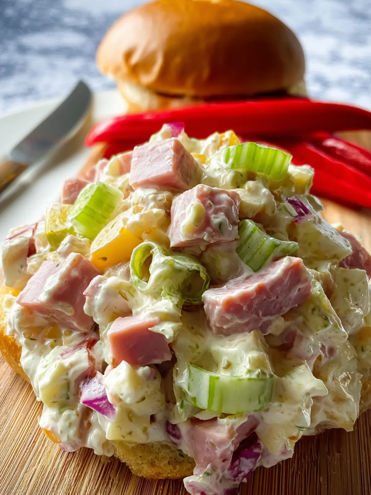 Versatile Usage: Whether you’re spreading it on a sandwich, serving it on crackers, or enjoying it straight from the bowl, creamy ham salad can adapt to any occasion or preference.