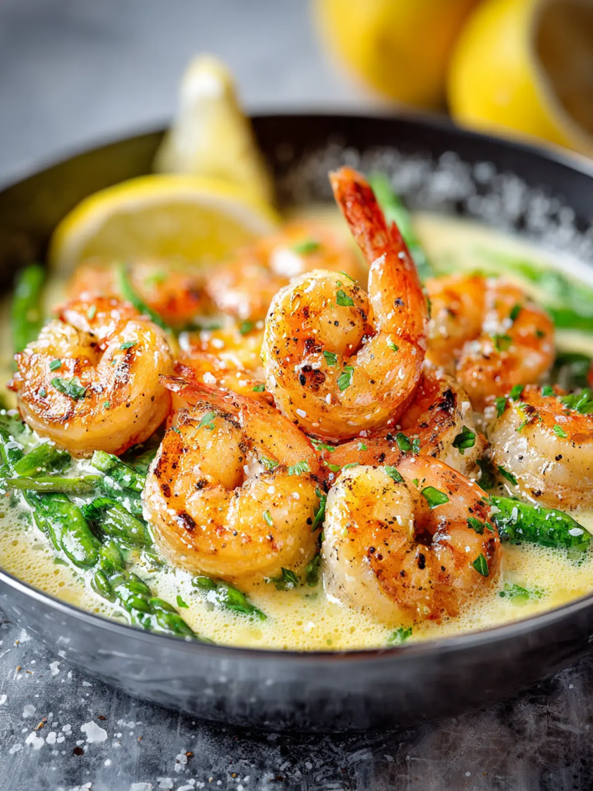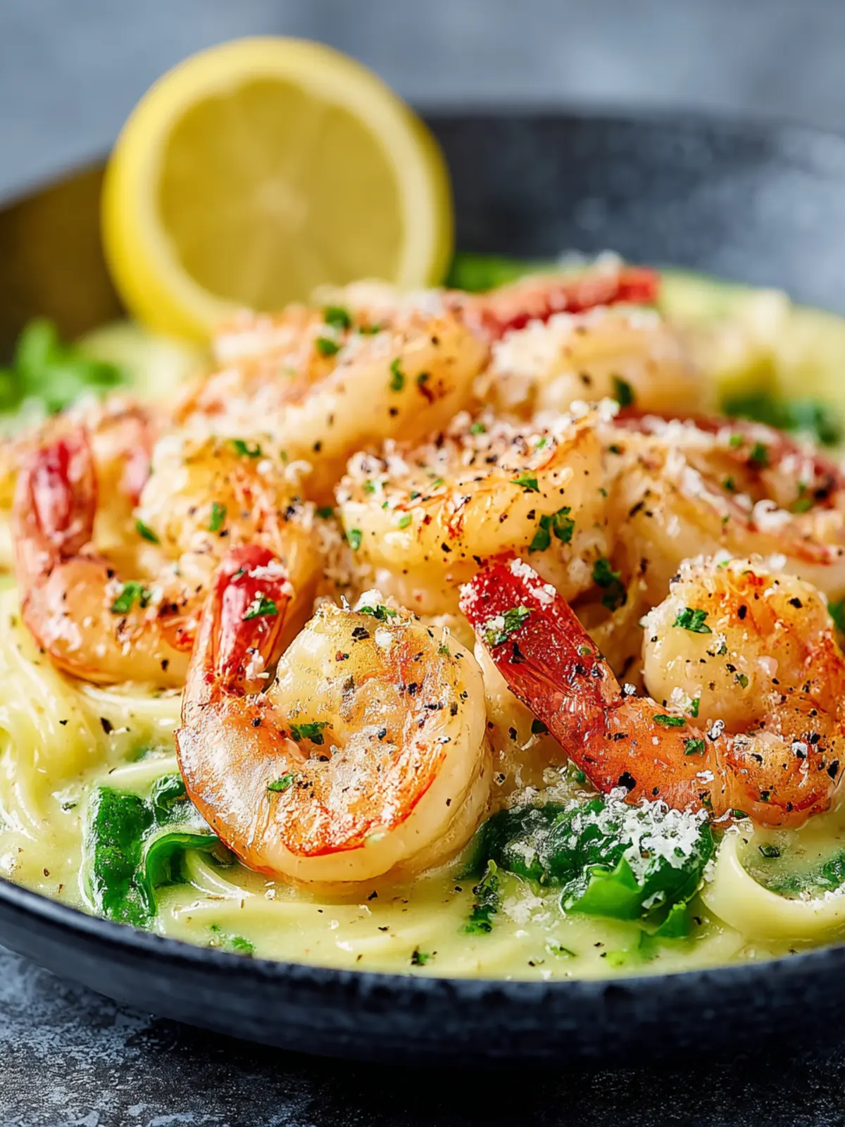 A delicious creamy garlic shrimp recipe with lemon zest and parmesan, perfect for a quick dinner.
