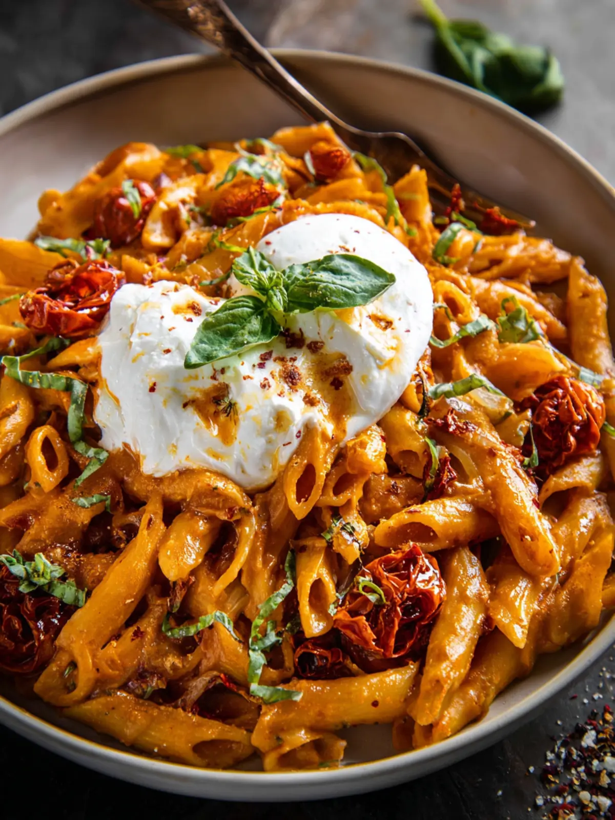 Delight in the luscious cream that envelopes each strand of pasta, making every forkful a delightful indulgence. The combination of rich burrata and tangy sun-dried tomatoes elevates this recipe to the next level. It’s an experience rather than just a meal!
