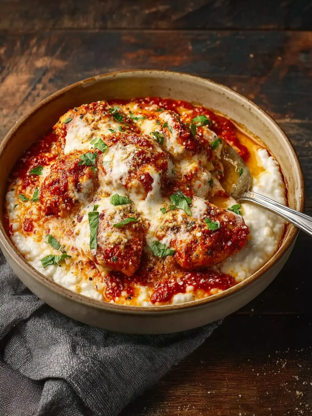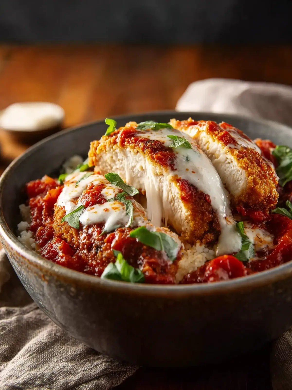 - Garnish and Serve. Top with fresh basil or parsley if desired, and dig in. You’ll be amazed at how satisfying and hearty this bowl is, without the heaviness of traditional Chicken Parm.