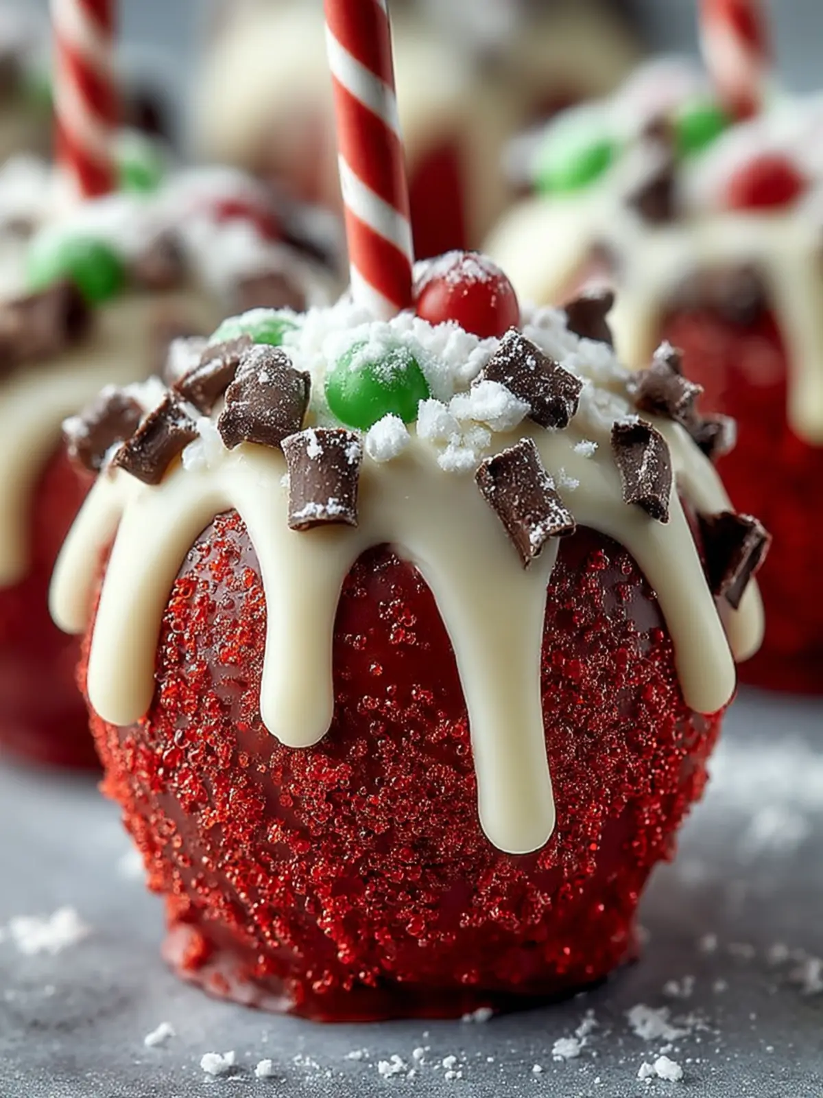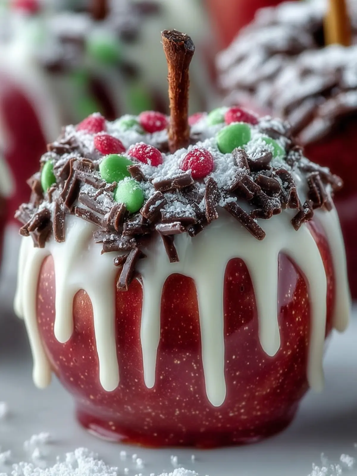 Deliciously festive chocolate dipped candy apples perfect for any holiday celebration.