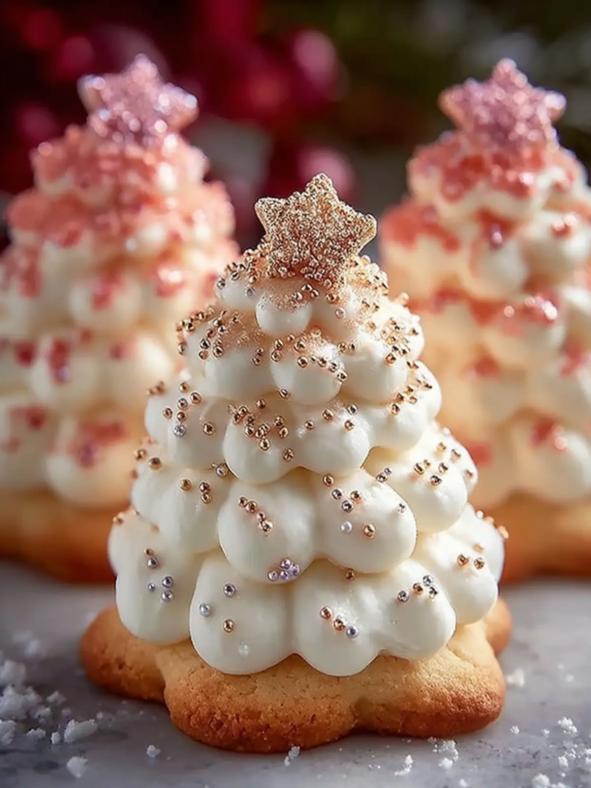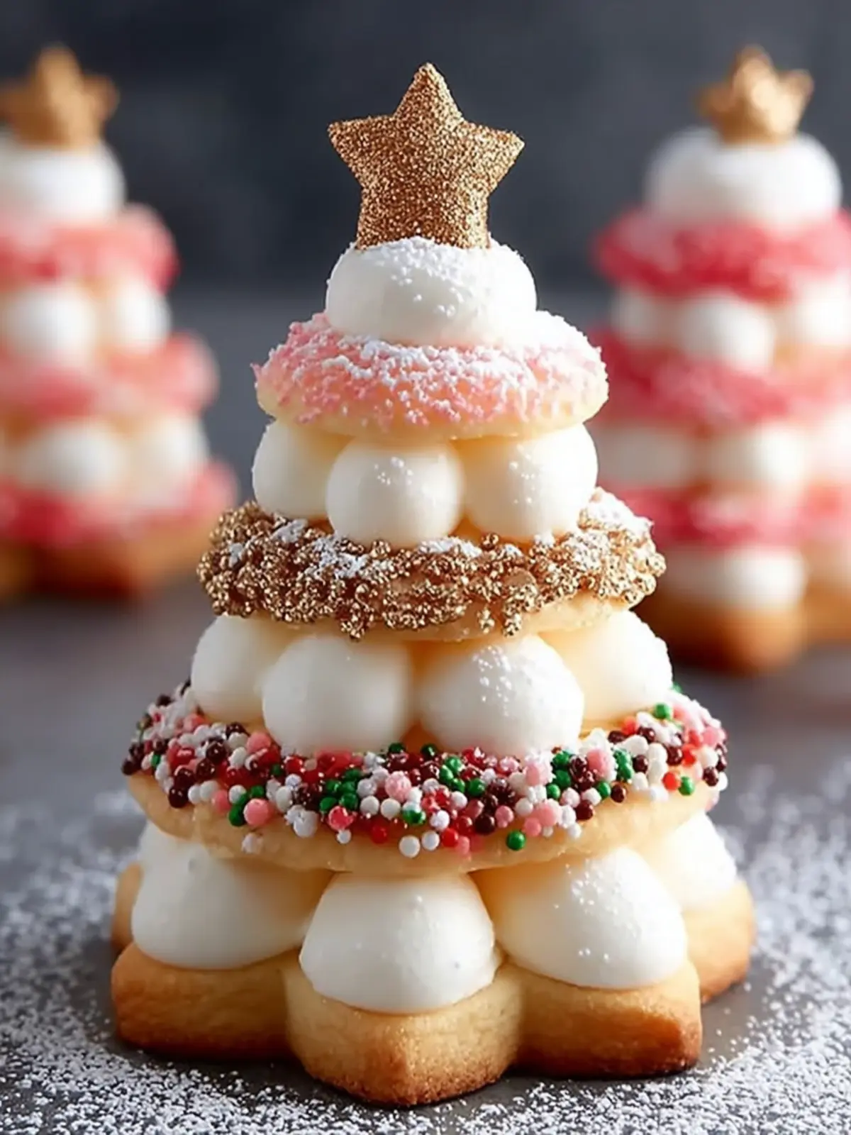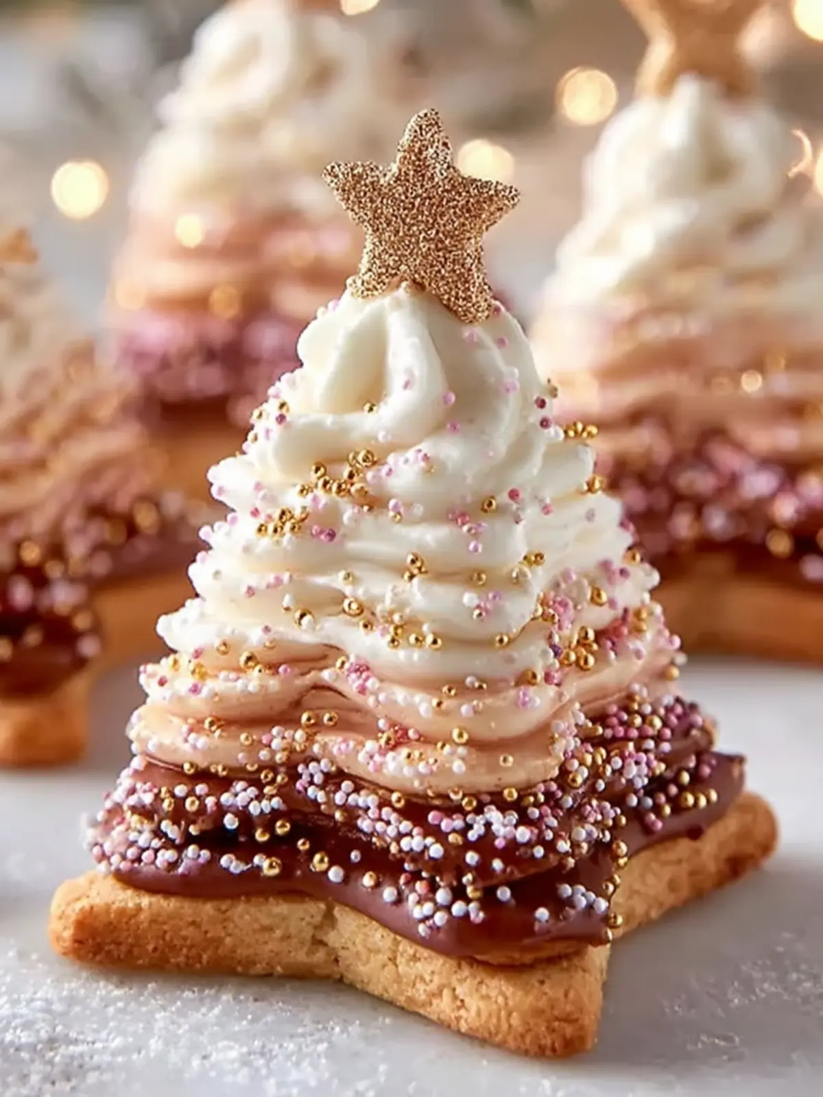 Star-shaped edible decorations: A fun and creative touch, these decorations crown each cookie like a Christmas tree topper, finishing them off beautifully.
