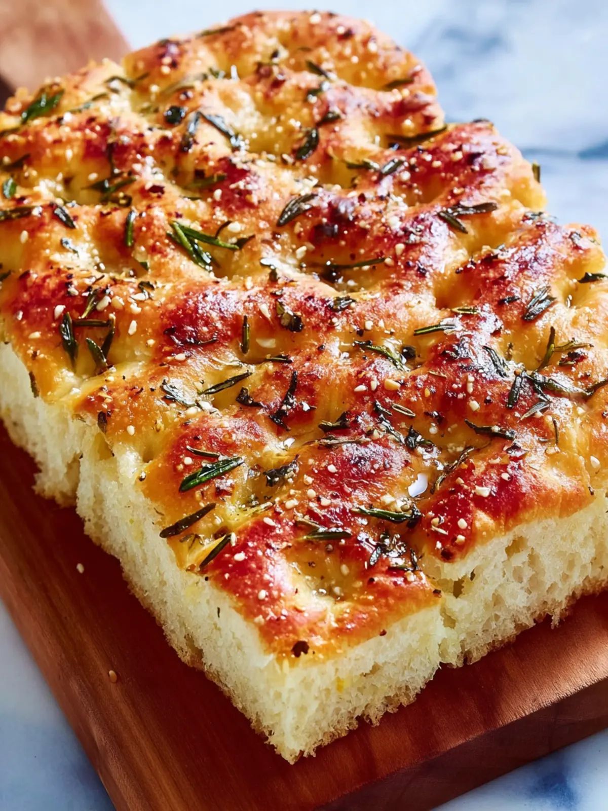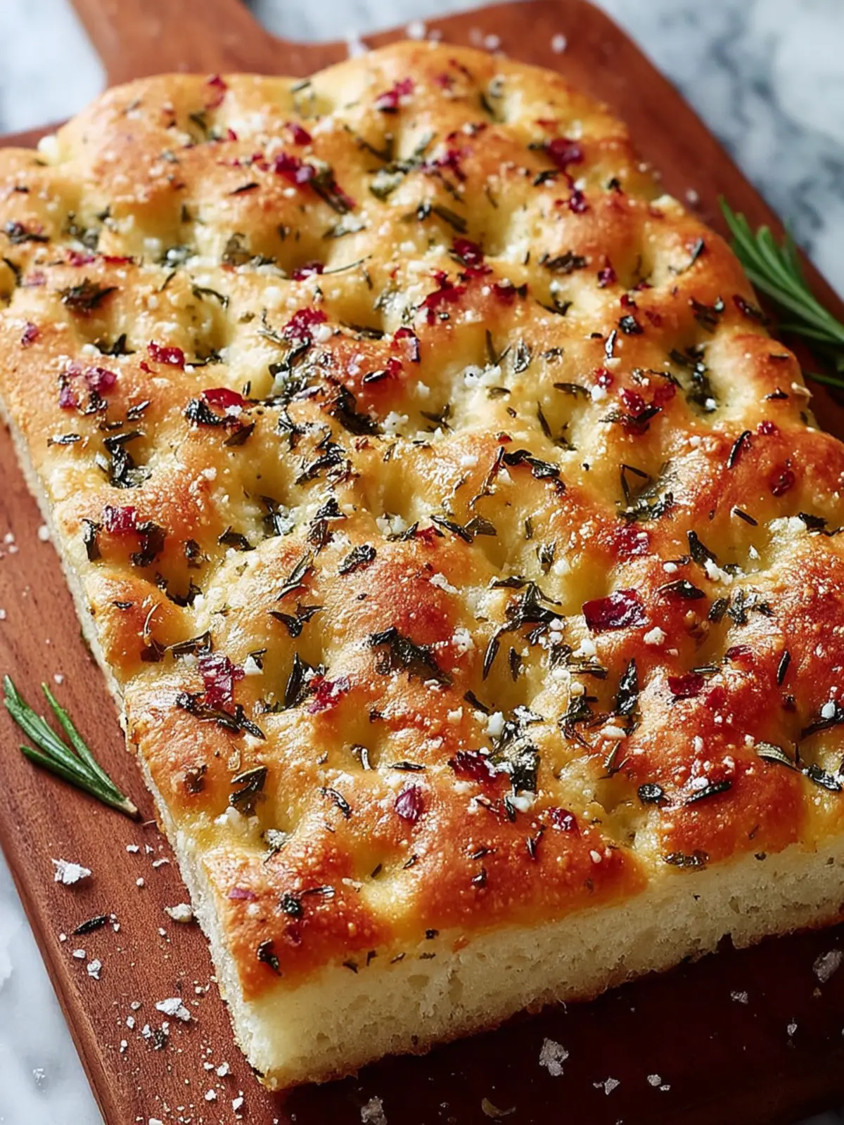 For an aromatic twist, consider adding a mix of herbs like thyme and oregano alongside the rosemary. This combo infuses the focaccia with layers of flavor, making it perfect as an elegant appetizer or a side to your favorite pasta dish.