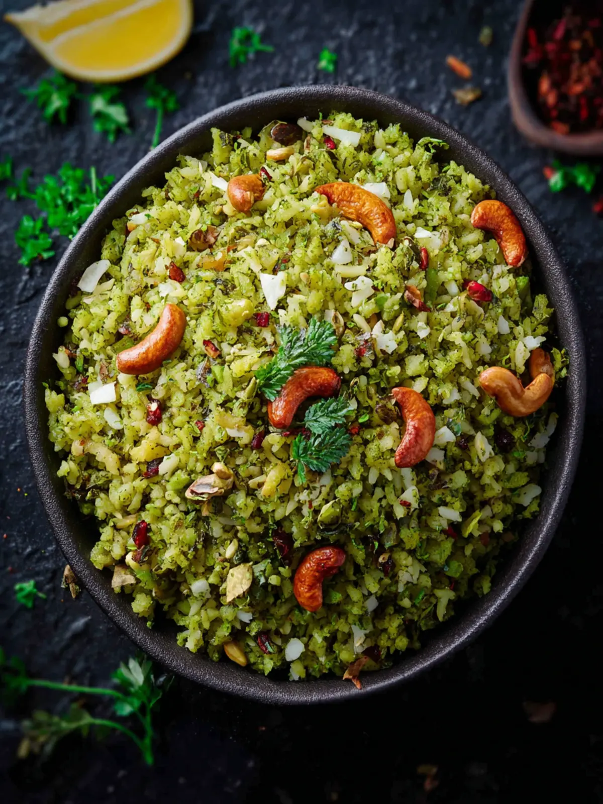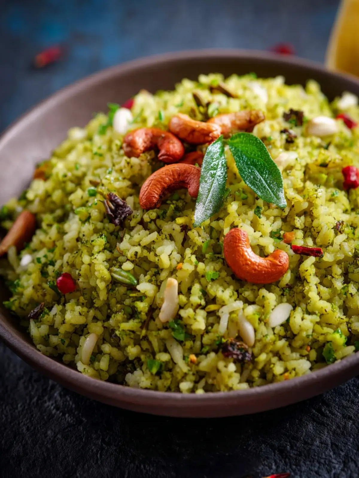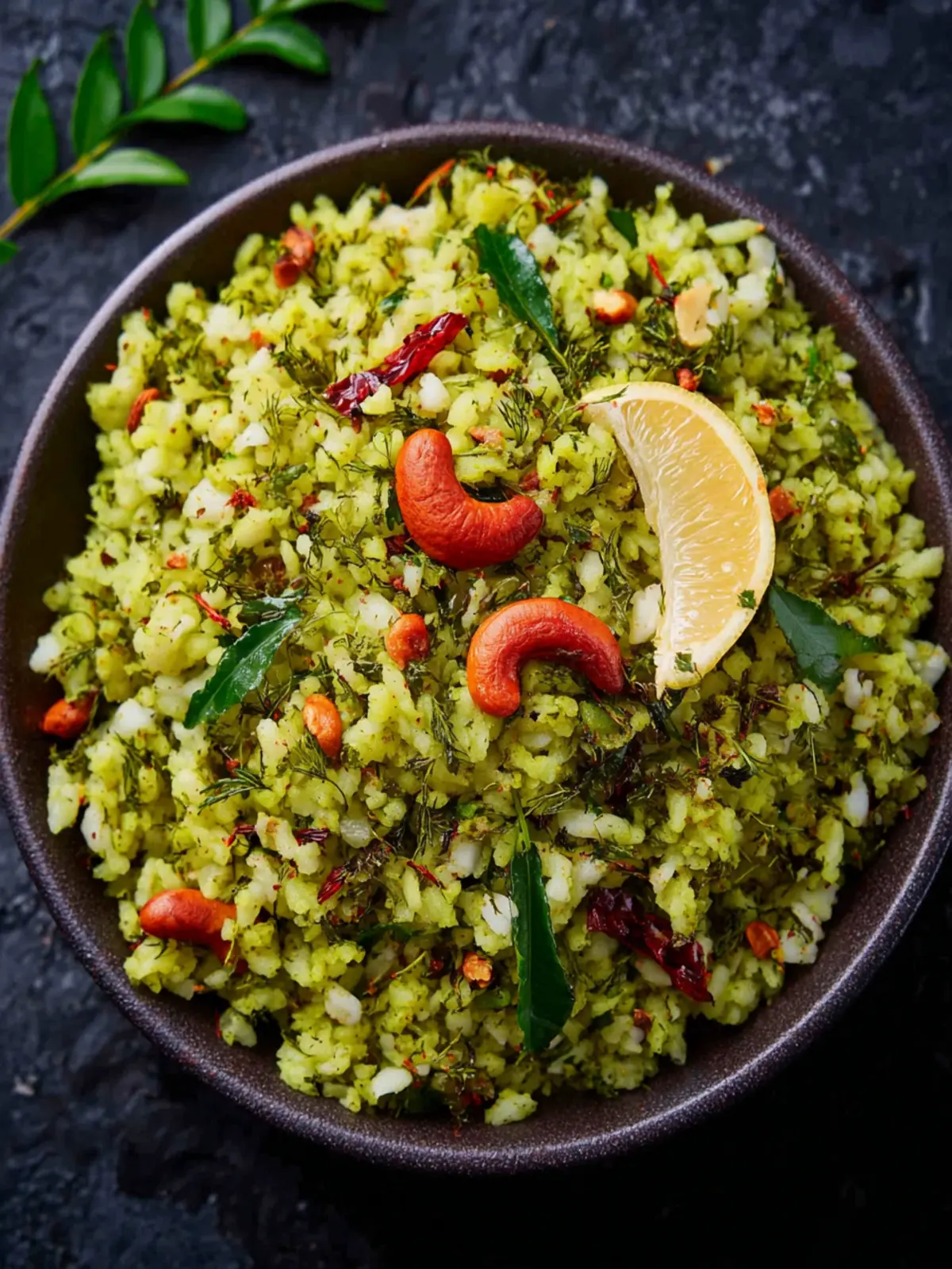 Adding a handful of roasted peanuts or cashews can elevate your green poha to a new level. The crunch offers a satisfying contrast to the soft poha, and the additional nuttiness amplifies the dish’s richness.