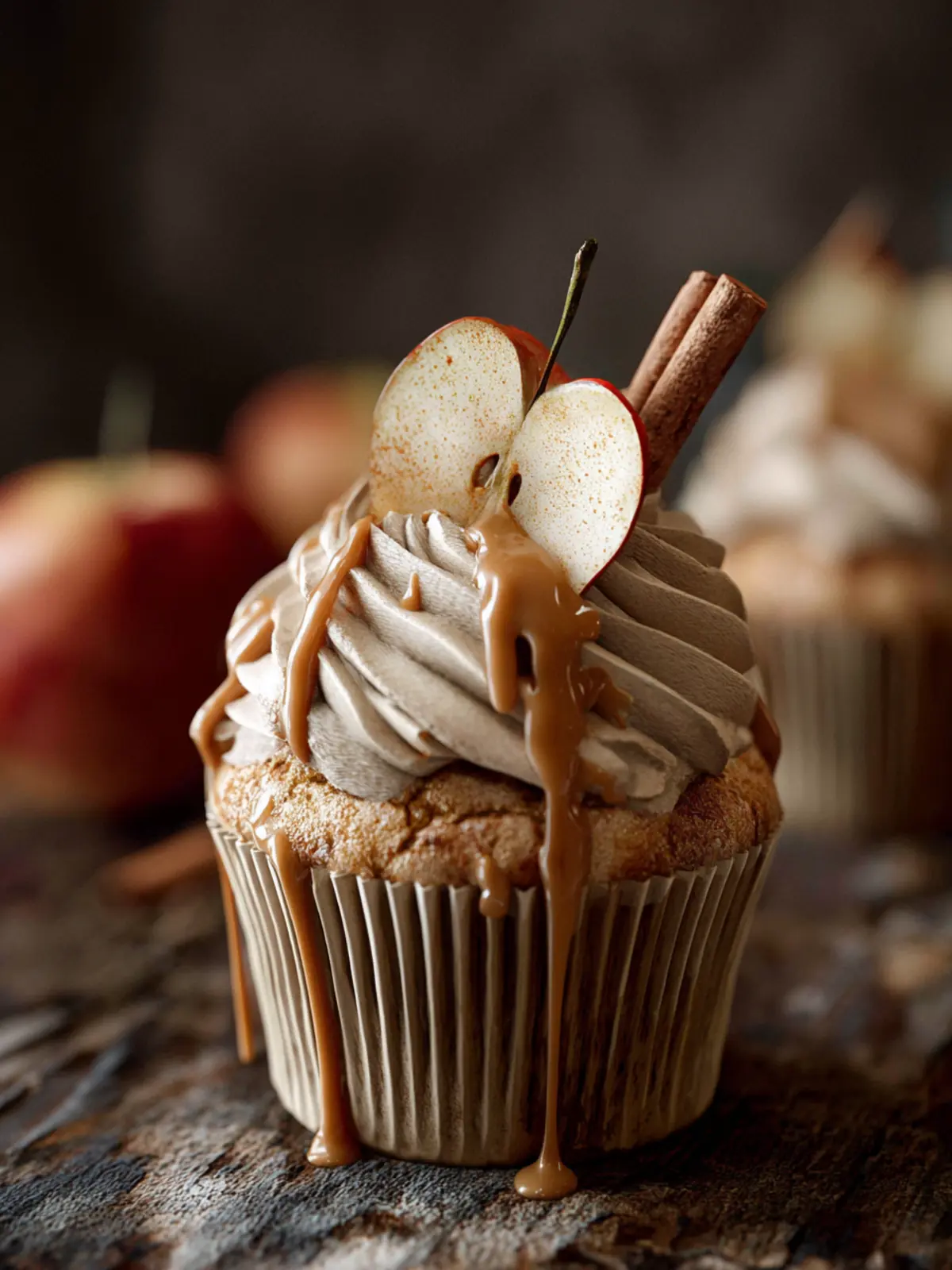 - Frost the cooled cupcakes with buttercream. Decorate with dried apple slices and a sprinkling of cinnamon sugar.