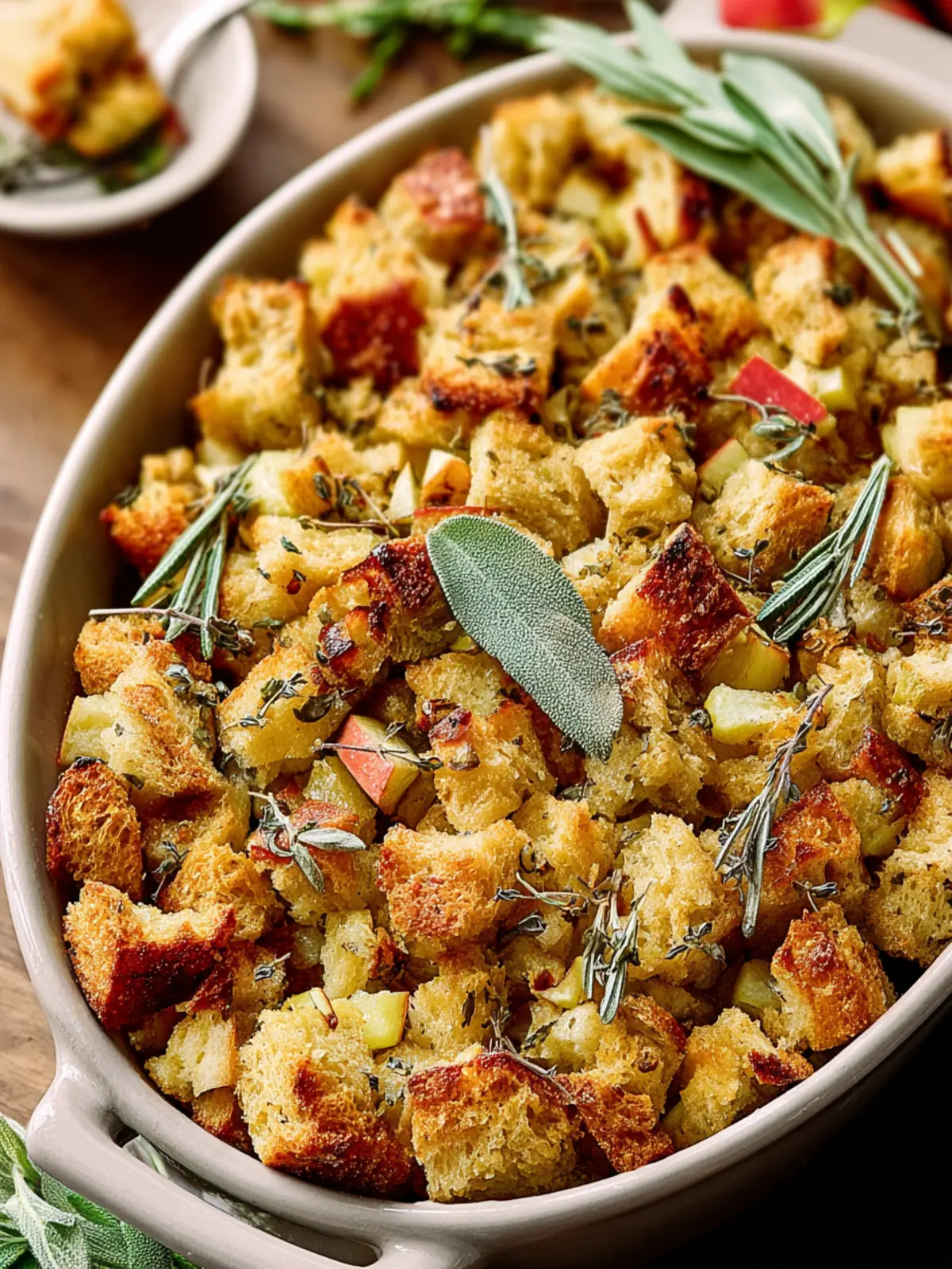 A delicious bread stuffing recipe infused with fresh apples and sage, perfect for your holiday gatherings.