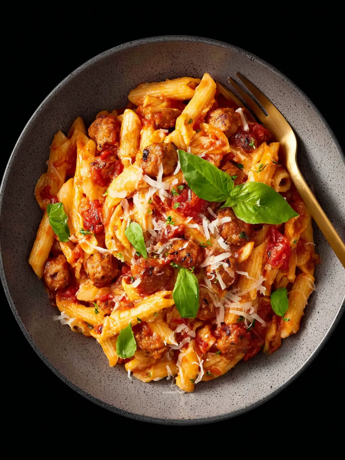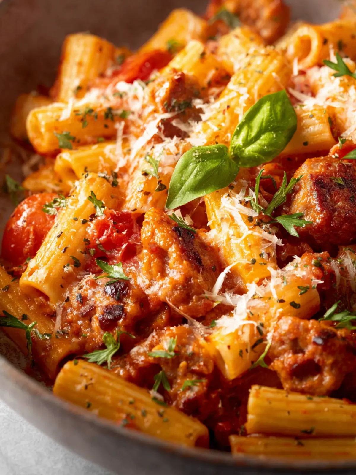 A hearty pasta dish featuring rigatoni, Italian sausage, and a creamy tomato sauce.