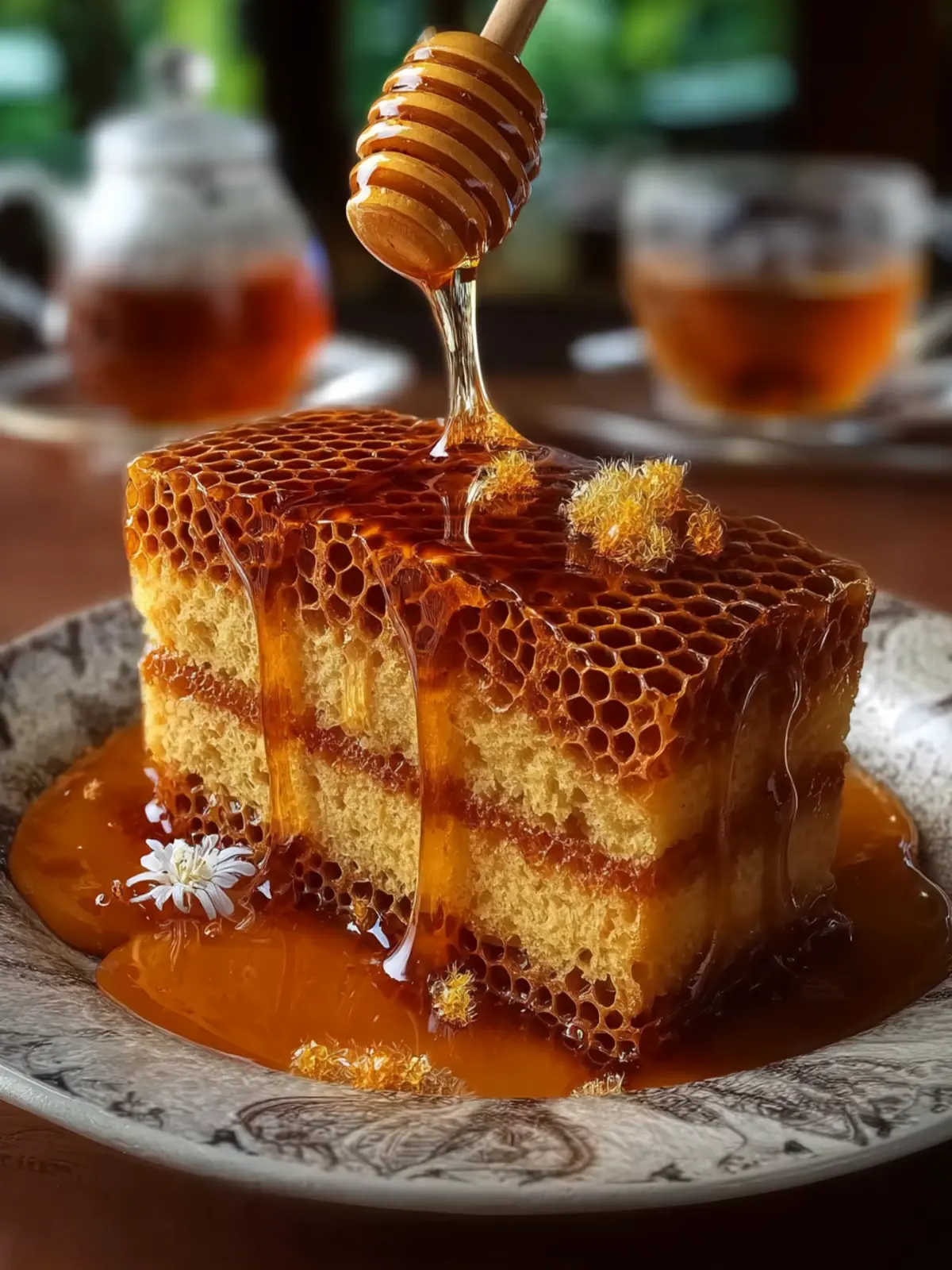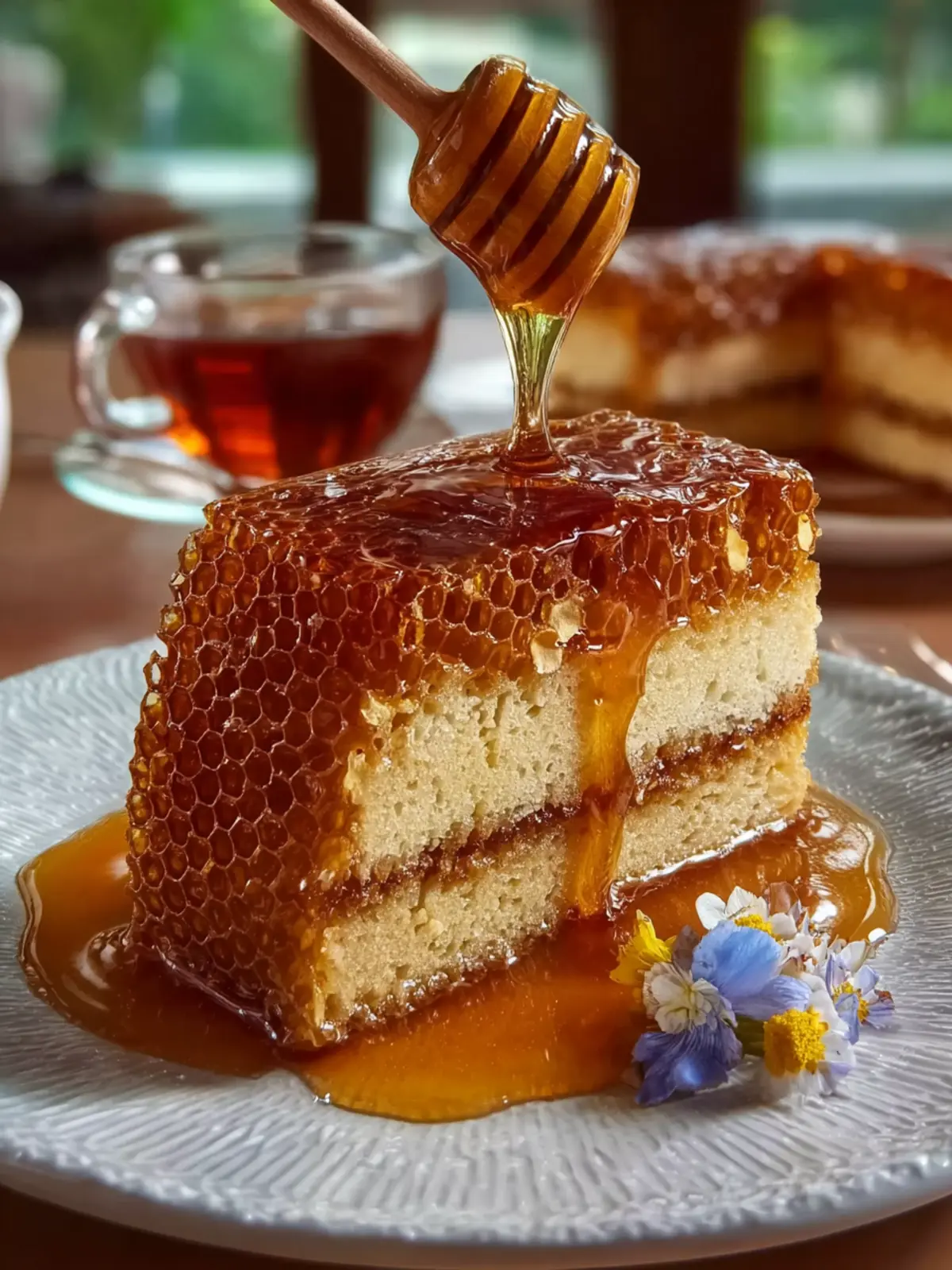 • Slice with Precision: Aim for even slices that showcase the cake’s signature honeycomb structure. A sharp knife dipped in warm water can help you achieve smooth cuts without tearing the cake.
