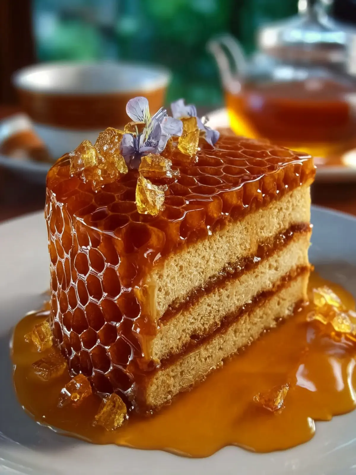 A delightful honeycomb cake with rich caramel flavor.
