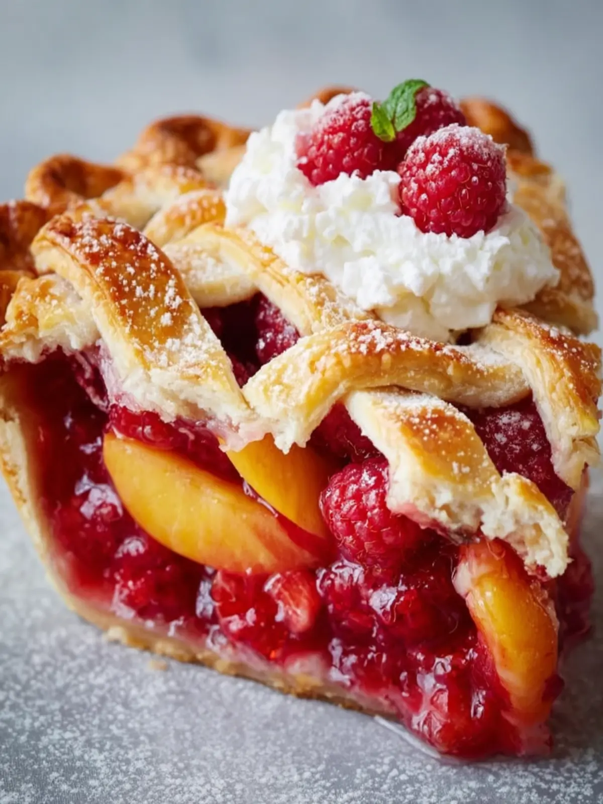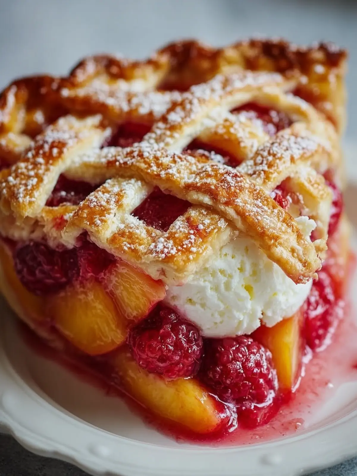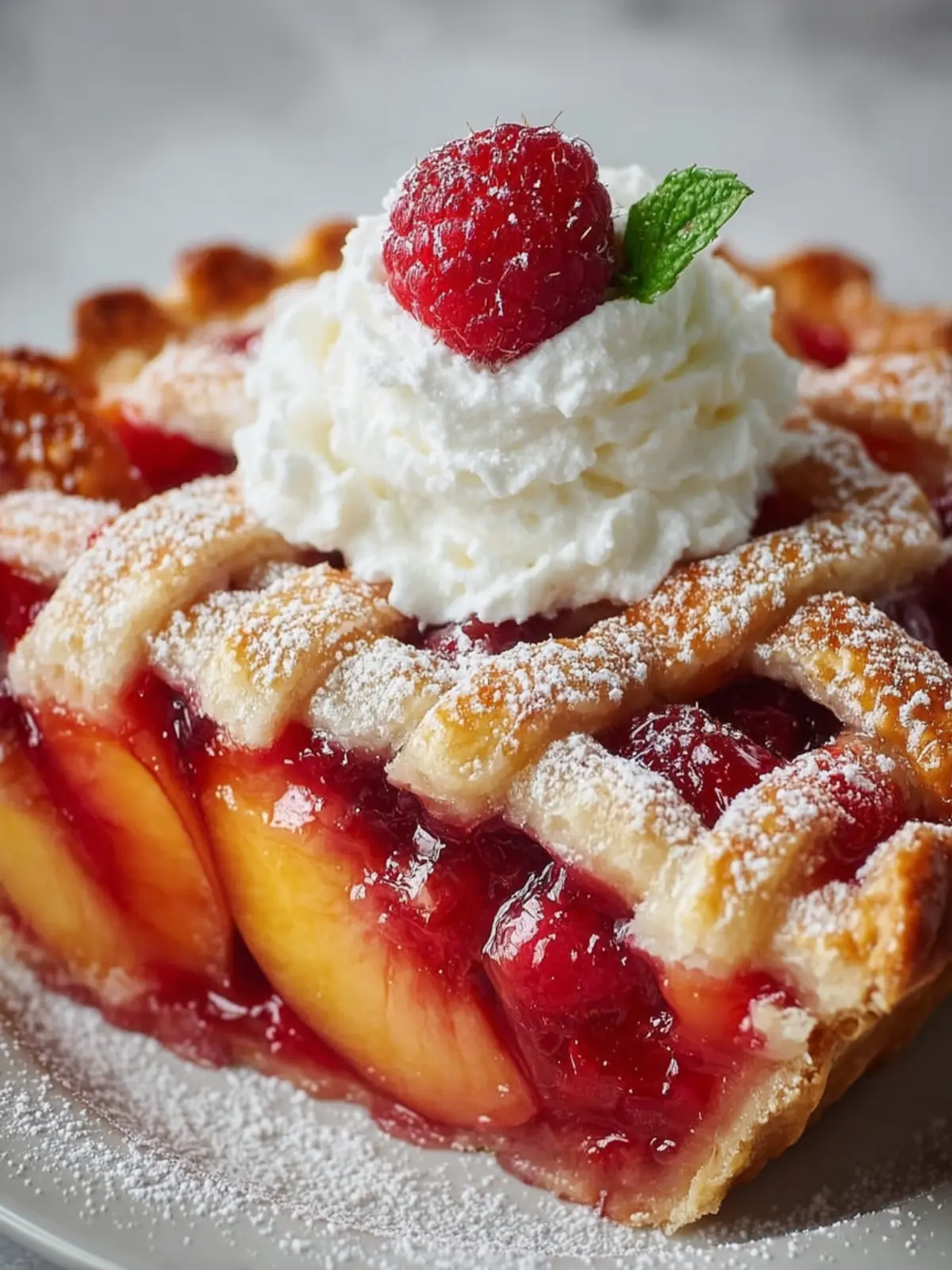 Endless Pairings: Serve this peach raspberry pie with a scoop of vanilla ice cream or a dollop of whipped cream for an extra indulgent touch. The contrast of temperatures and textures will elevate your dessert experience.