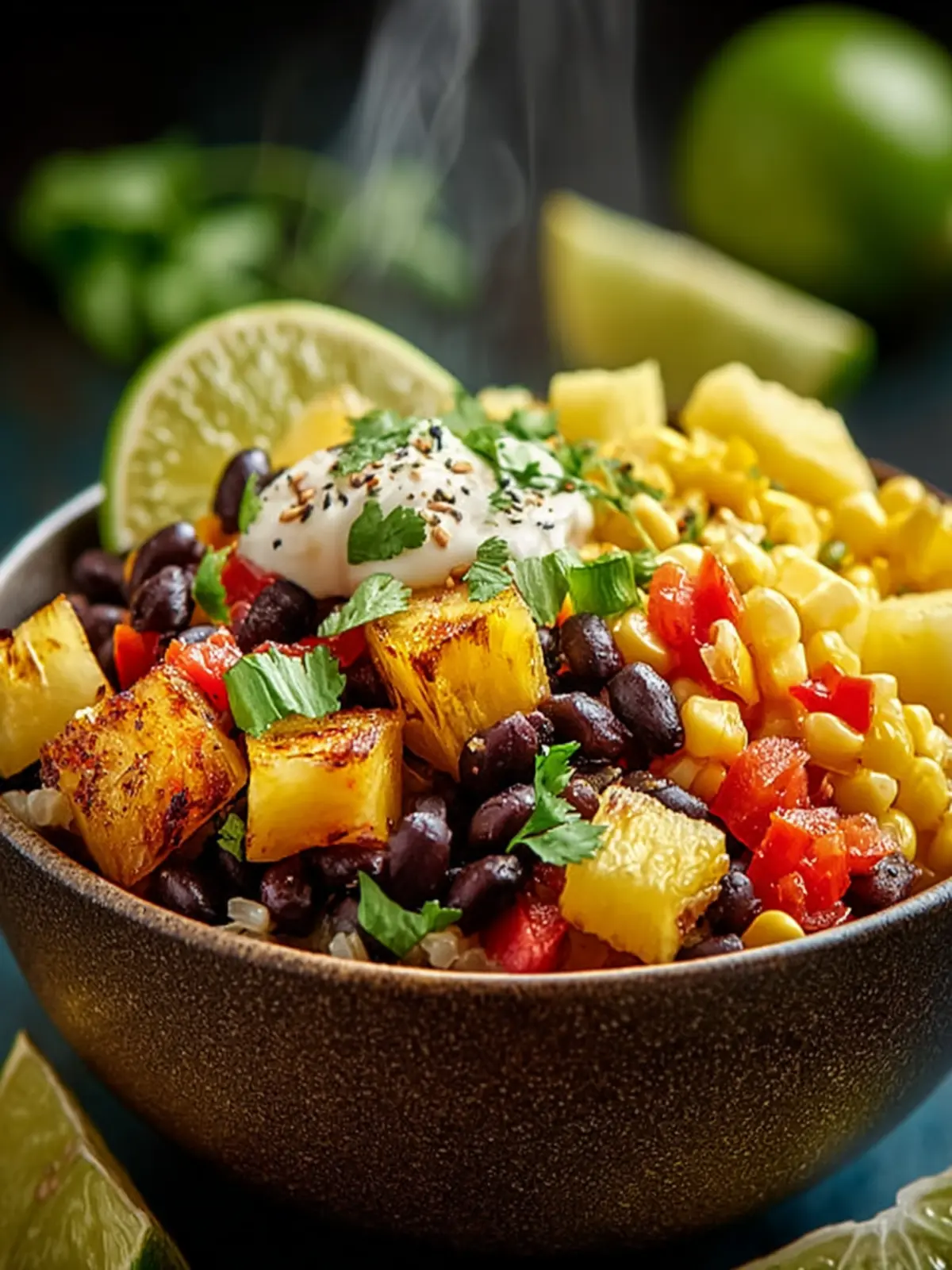 Rich in Nutrients: This bowl doesn’t just taste good; it’s great for you too! Black beans add protein and fiber, while corn provides essential vitamins like B6 and folate. Pineapple adds a dose of vitamin C, making this dish a powerhouse of nutrients.