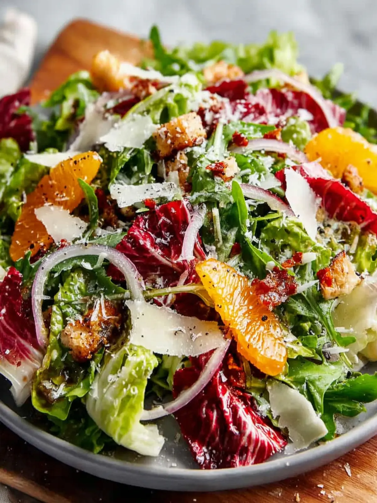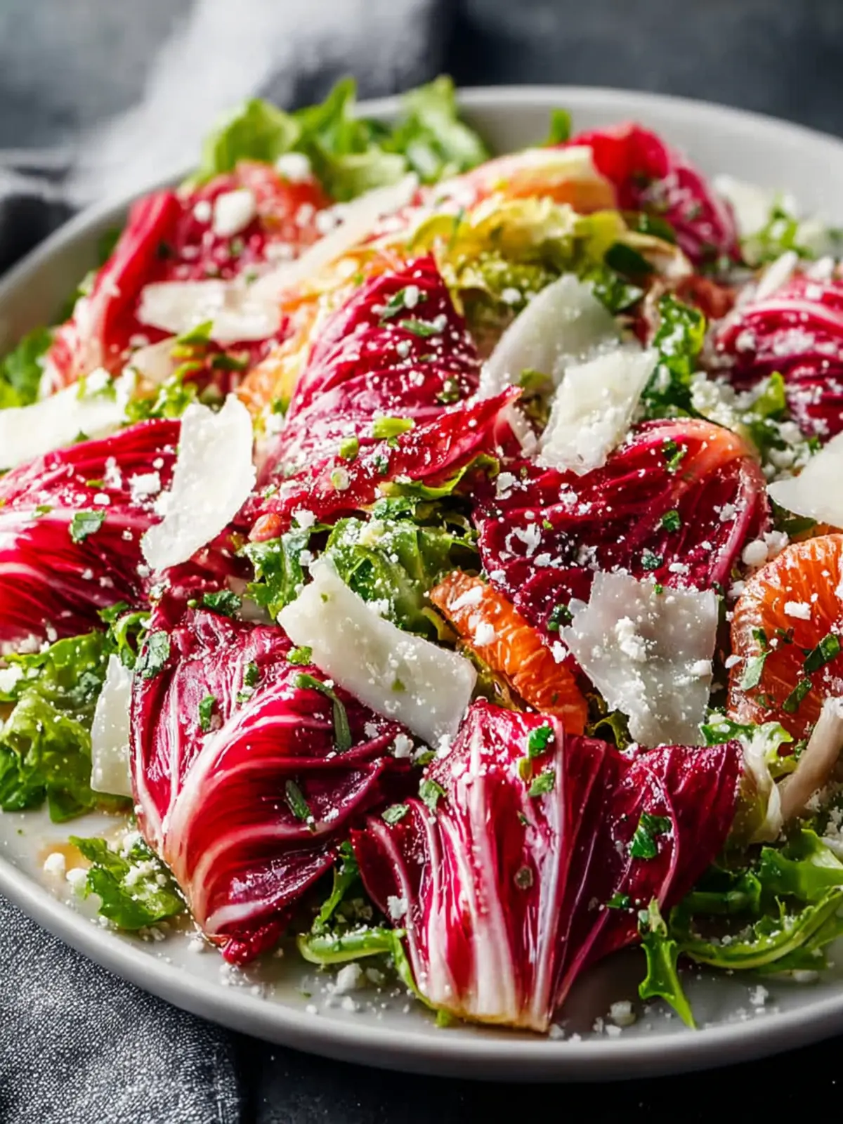 Cheese: Crumbled feta or shaved Parmesan brings creamy richness. The saltiness cuts through the bitterness of the radicchio, creating a balanced flavor profile.
