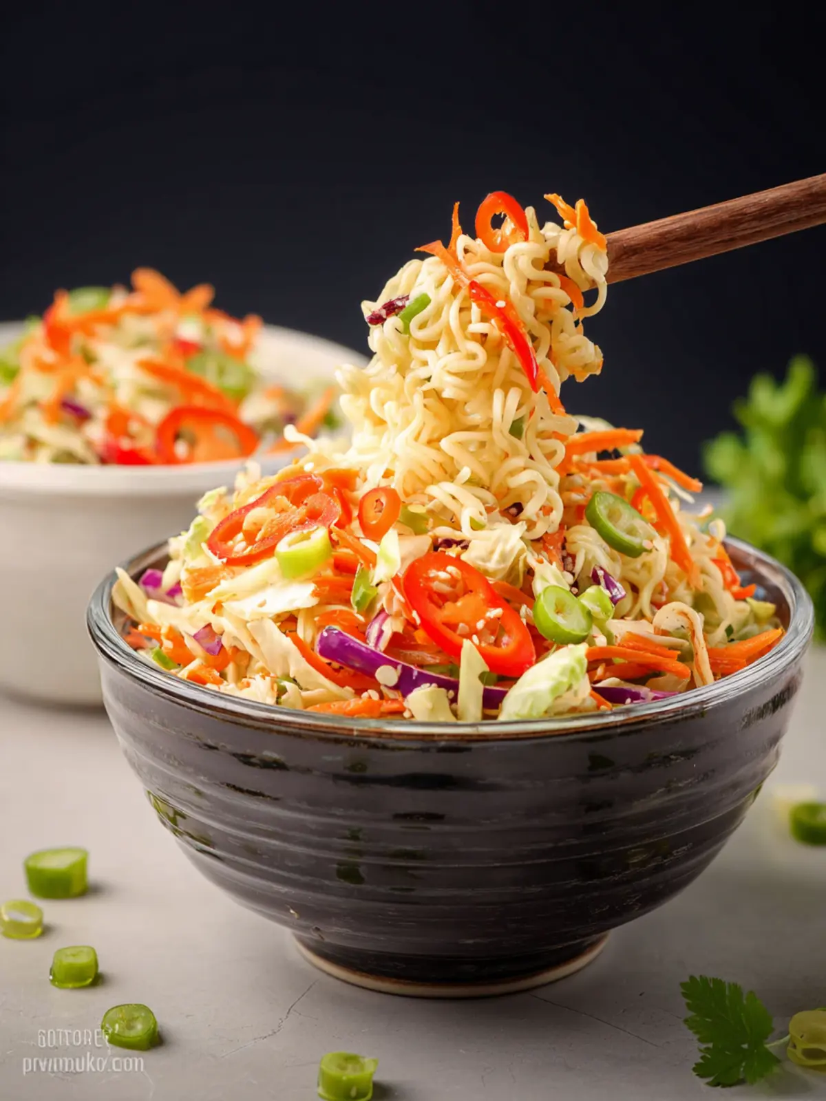 Versatile Ingredients: One of the joys of ramen noodle salad is its adaptability. You can mix and match various vegetables like bell peppers, carrots, and green onions, or even throw in some protein such as grilled chicken or tofu for an extra boost.