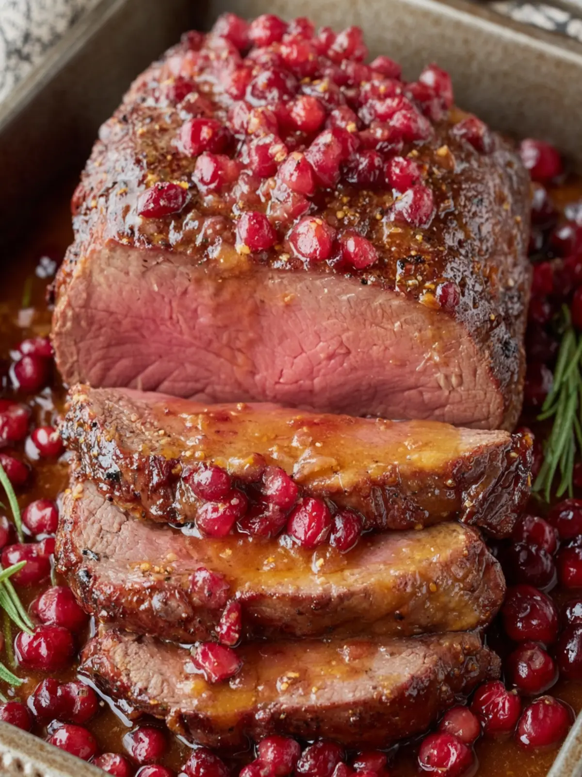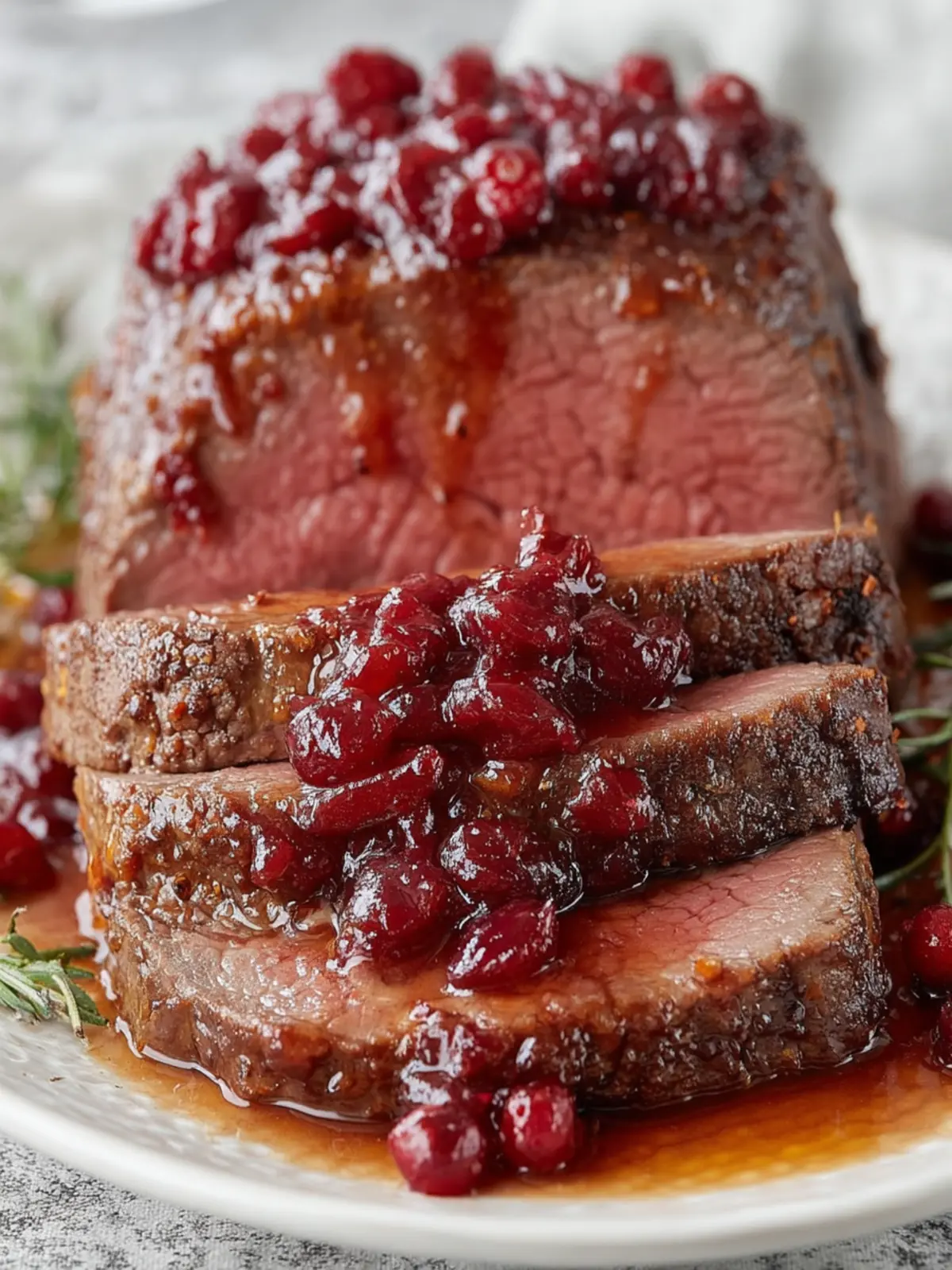 A flavorful roasted beef dish with a sweet and tangy cranberry glaze.