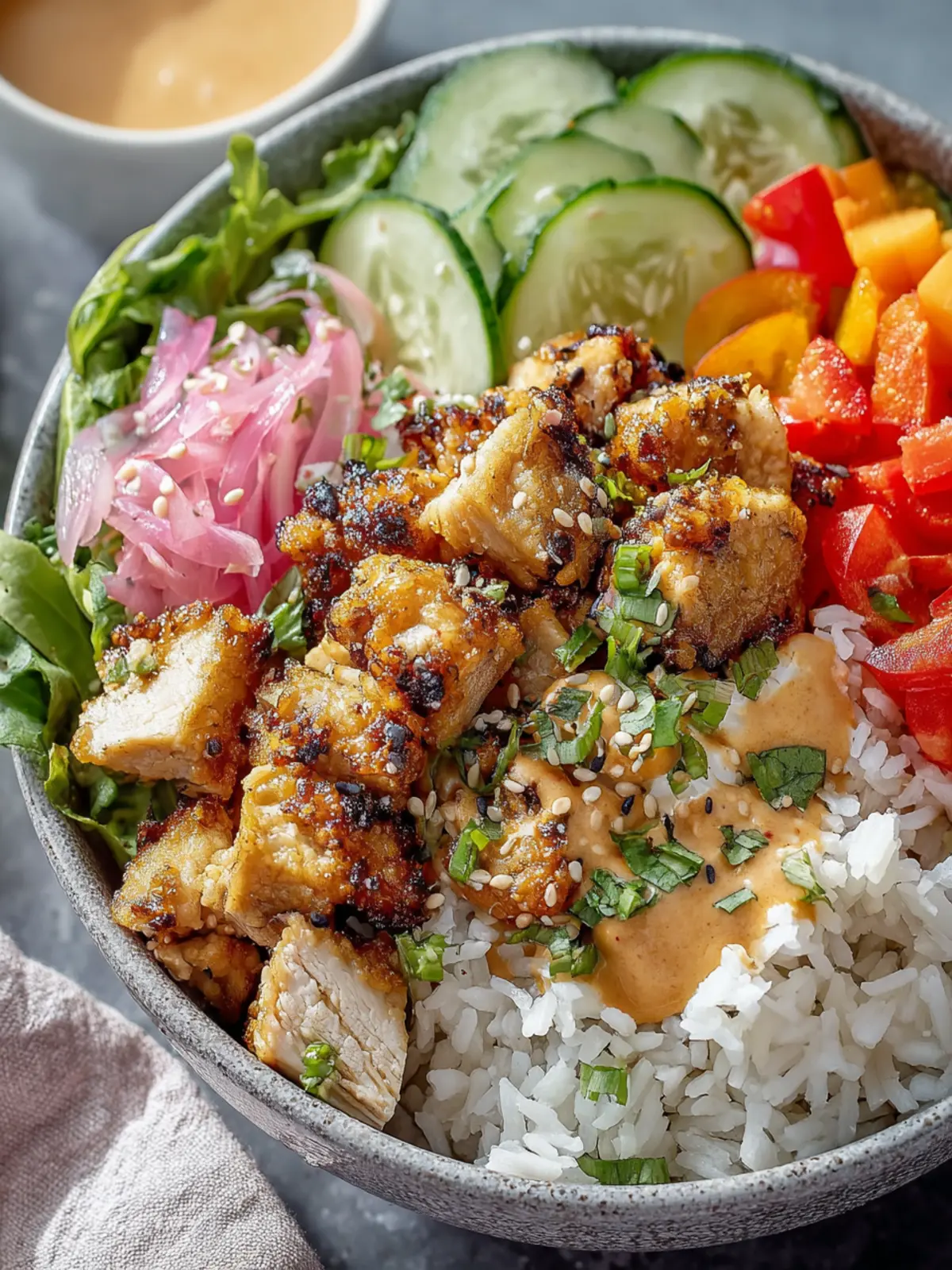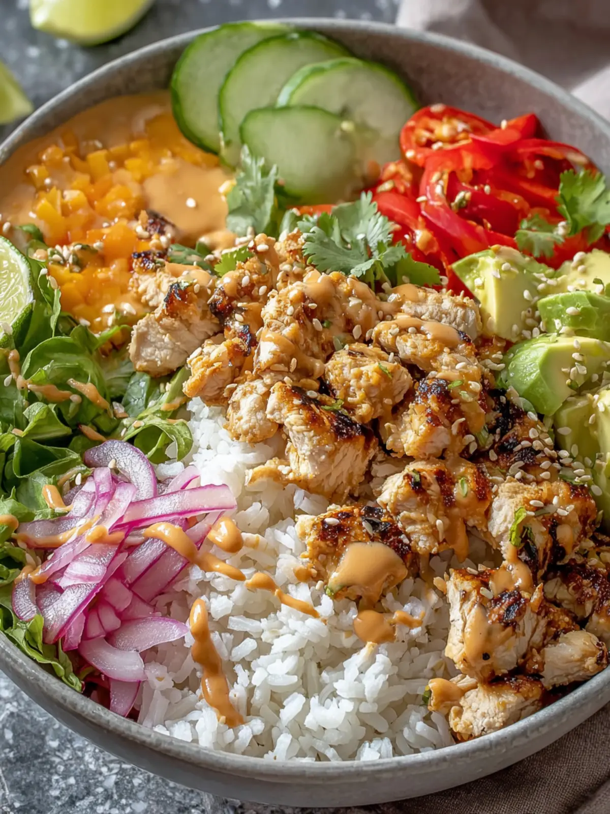 Every element contributes uniquely to the overall flavor and enjoyment of your savory chicken banh mi bowls. Enjoy crafting your culinary masterpiece!