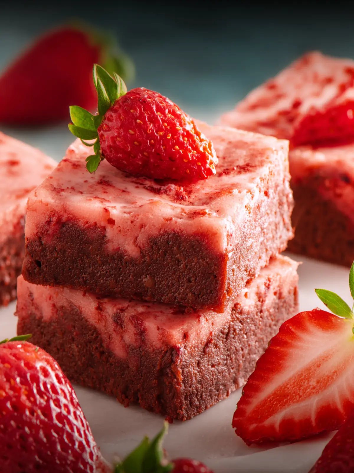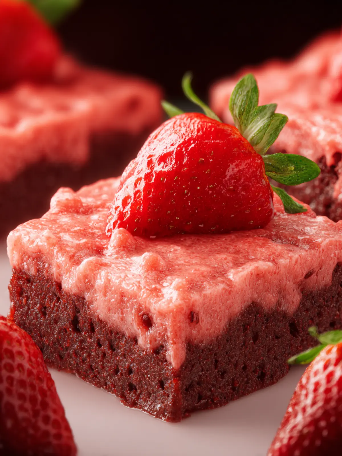 Decadent Texture: The fudgy brownie base contrasts beautifully with the soft strawberries, creating a delightful texture that’s both chewy and moist. Each bite is a harmonious blend of rich chocolate and fresh fruit.