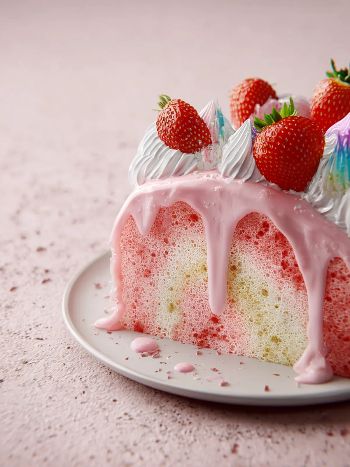 Strawberry Milk: A key component, strawberry milk infuses the cake with a delightful strawberry flavor, accentuating the cake’s overall profile and making it oddly nostalgic.