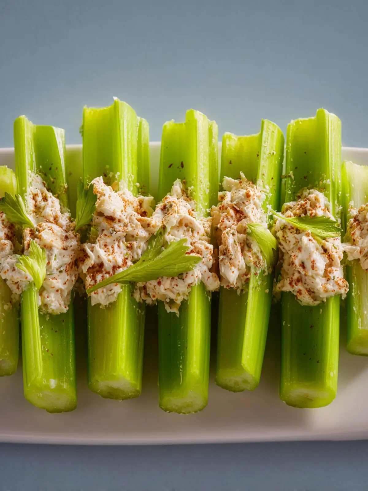 Herbs and Spices: Fresh dill or chives add a burst of flavor in every bite of stuffed celery. If you want a slightly spicier twist, consider a pinch of cayenne or a dash of garlic powder.