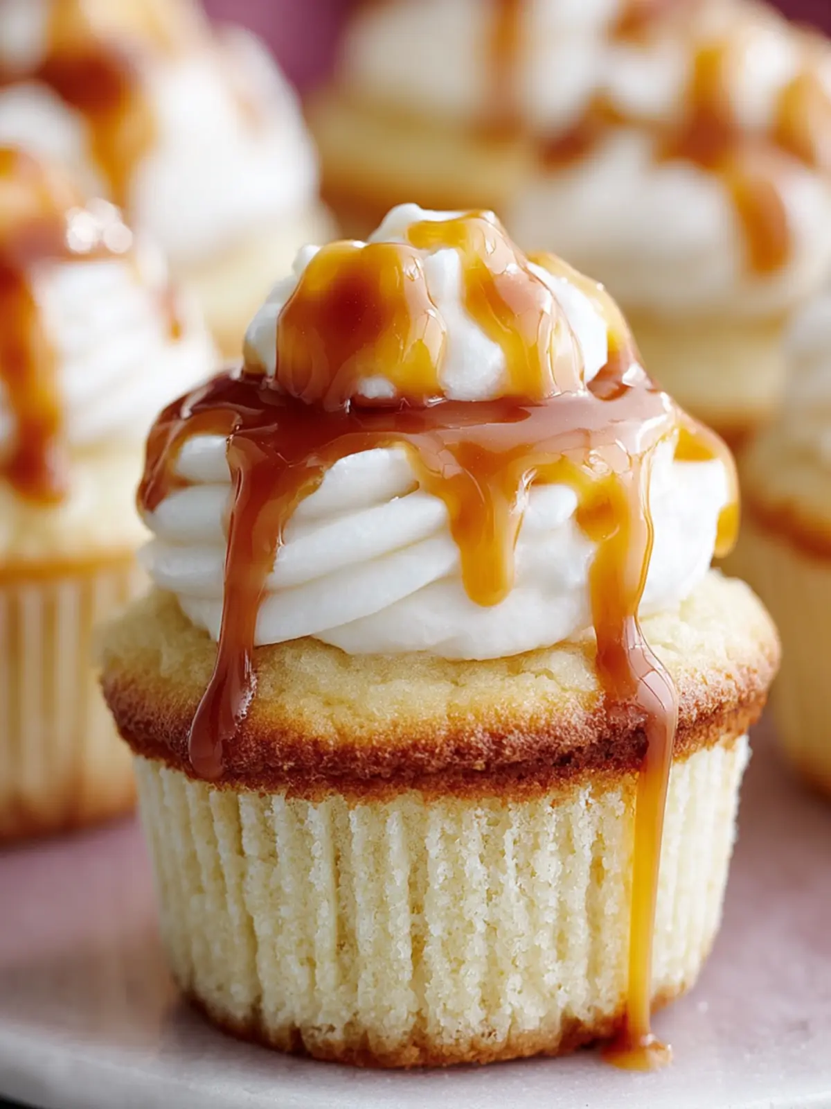 These cupcakes are a dream come true for any occasion. Whether it’s a birthday party, a cozy gathering with friends, or just a treat for yourself after a long week, each bite is a perfect balance of light, fluffy vanilla cake topped with a rich, gooey caramel drizzle that makes everything taste better.